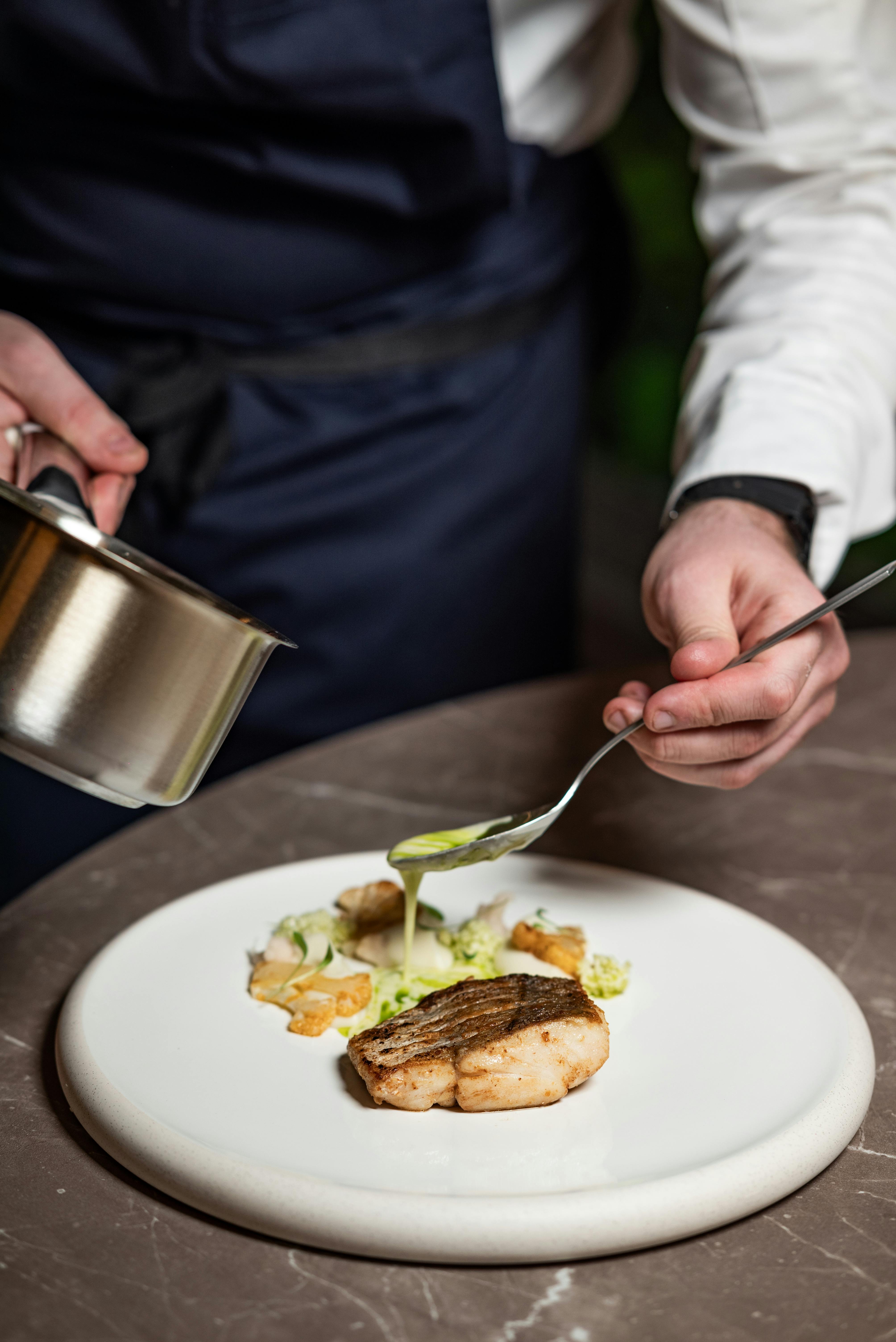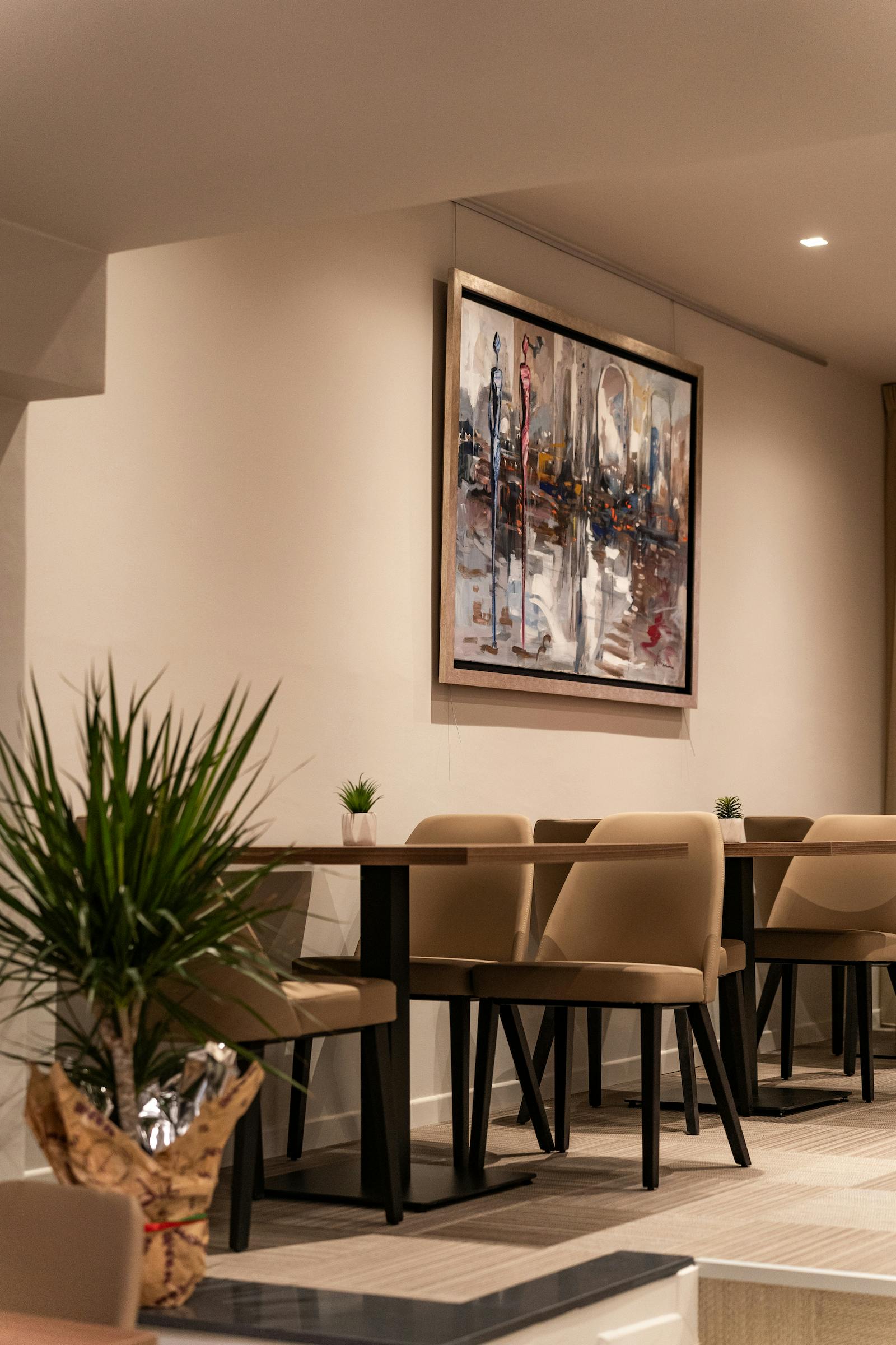 Το εστιατόριο του ισογείου χρησιμοποιείται για πρωινό, μεσημεριανό γεύμα και δείπνο.