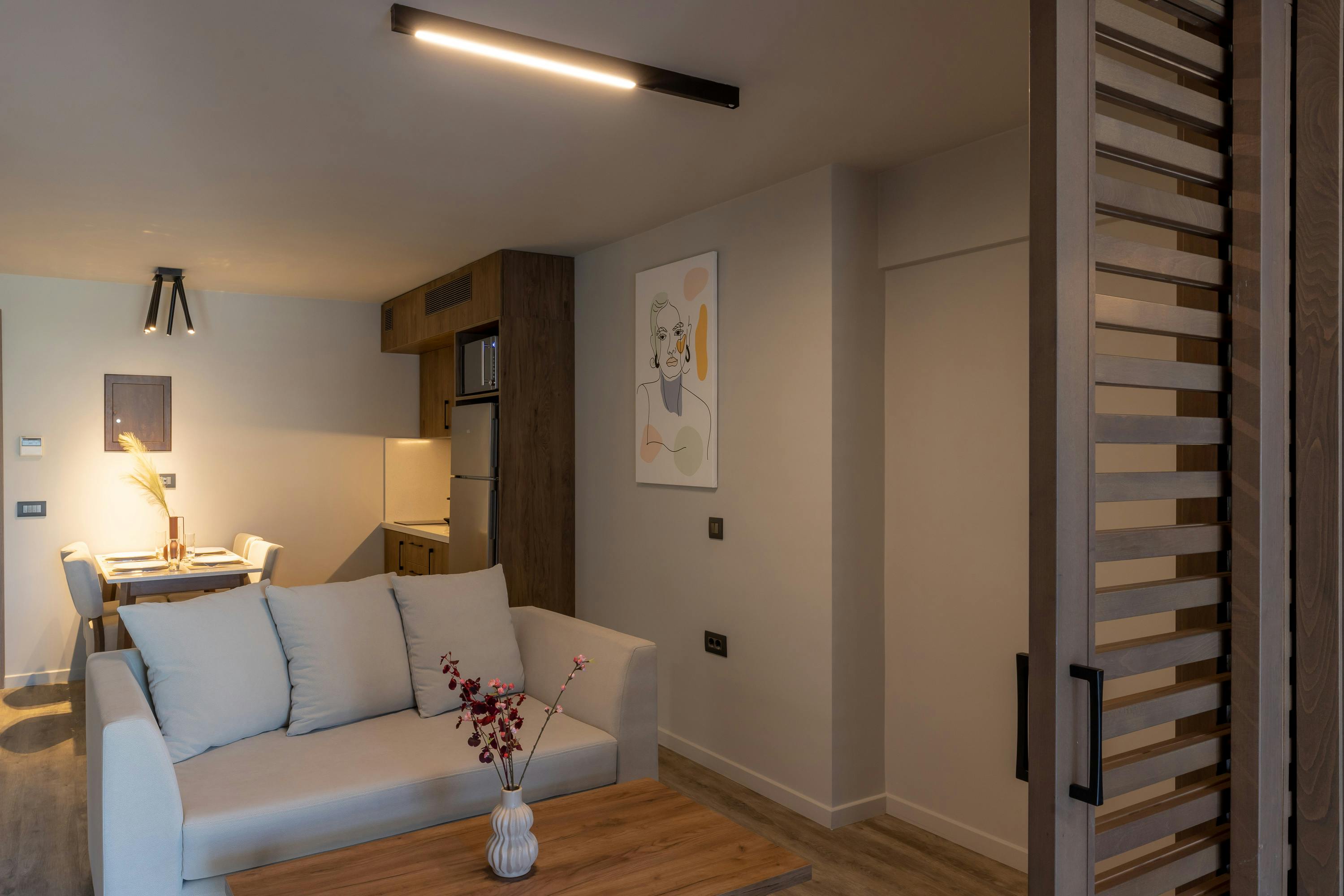 Κρεβάτι king size και διπλός καναπές-κρεβάτι, Έξυπνη κλειδαριά πόρτας, πλήρως κλιματιζόμενη, πλήρως εξοπλισμένη κουζίνα με τραπέζι κουζίνας, μηχανή Nespresso, μεγάλο ψυγείο, φούρνος μικροκυμάτων / γκριλ, βραστήρας και τοστιέρα, επιπλέον καναπές, ντους ξεχωριστό από το WC, Ντους τύπου rainfall, καθρέφτηςαντιθαμβωτικός, μεγεθυντικός καθρέφτης, καθρέφτης ολόσωμος, χρηματοκιβώτιο μεγέθους φορητού υπολογιστή, τηλέφωνο δίπλα στο κρεβάτι, δωρεάν wifi, στεγνωτήρα μαλλιών, σίδερο και σιδερώστρα, ηχομονωμένα παράθυρα, 3 τηλεοράσεις Android, Amazon echo dot που υποστηρίζουν ηλεκτρικά ρολά συσκότισης και Philips Hue φώτα led.