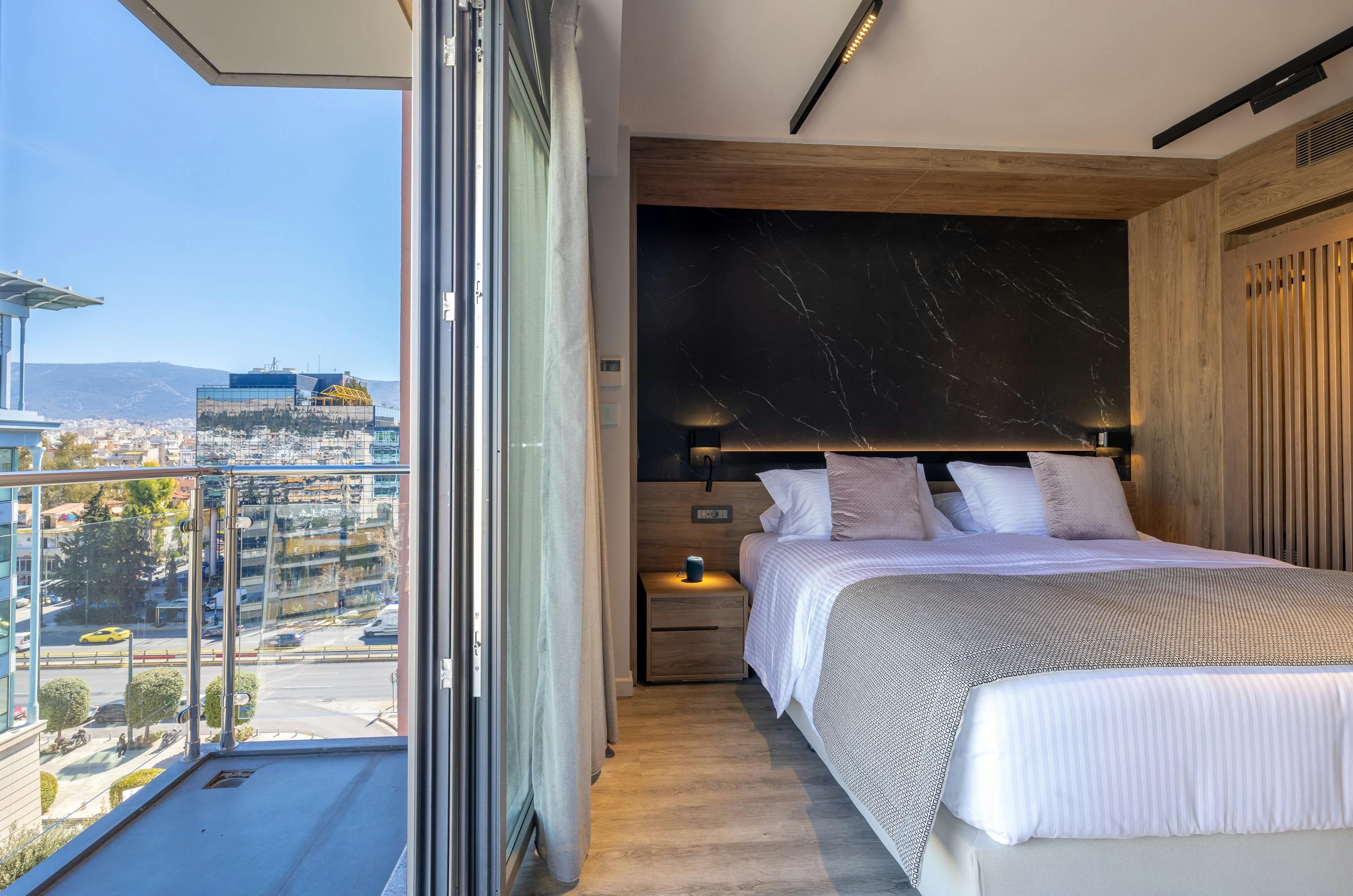 Πολυτελής σουίτα 50 τ.μ. με μεγάλο μπαλκόνι, μαγευτική θέα στο λόφο της Ακρόπολης, τον Λυκαβύτο και τον λόφο Φιλοπάππου