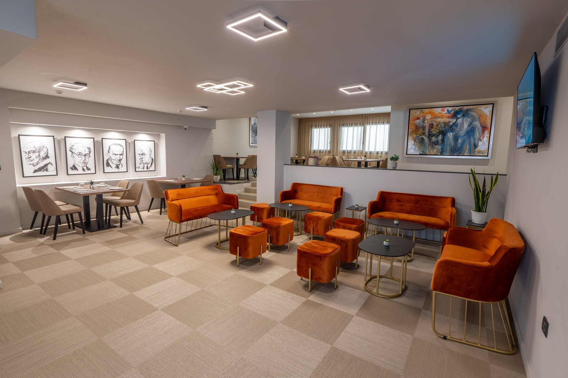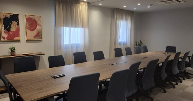 Host productive gatherings in our modern meeting room, accommodating up to 20 participants. The space is equipped with state-of-the-art audiovisual technology, natural light, and flexible layouts — ideal for corporate meetings, workshops, and private presentations.