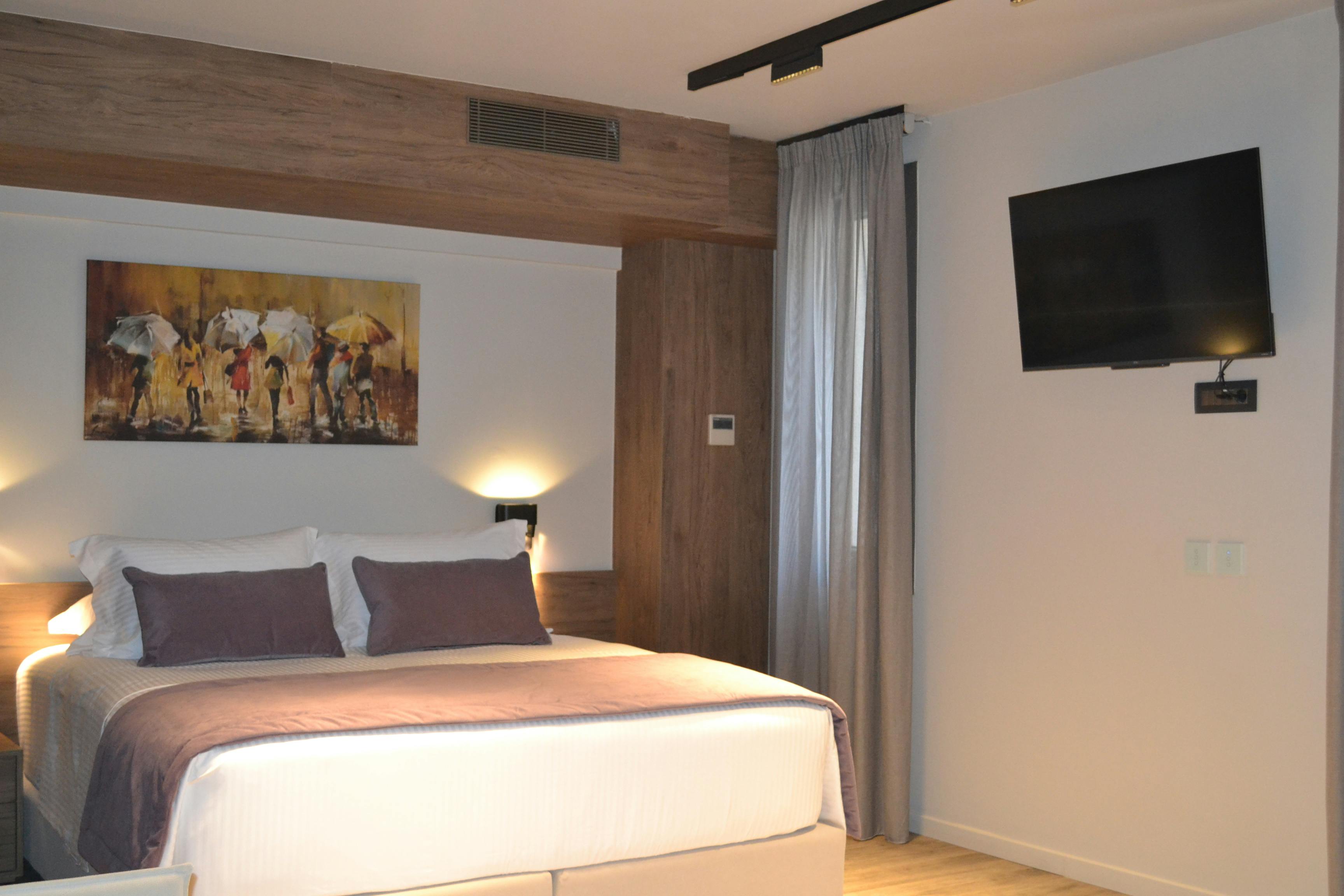An elegant 40-square-meter suite featuring a king-size bed, a double sofa bed, and a tranquil backyard view.