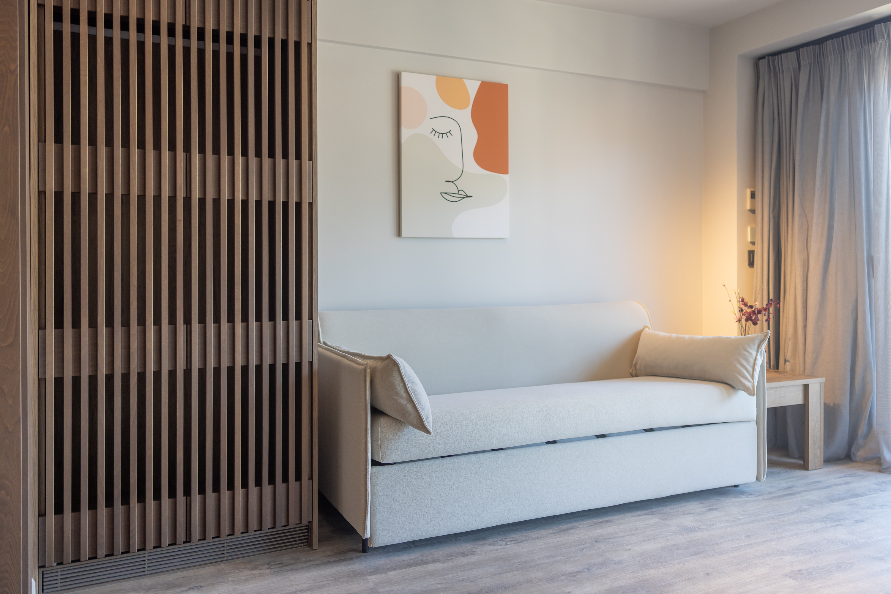 Experience a spacious 50-square-meter luxury suite offering city views, a king-size bed, and a comfortable double sofa bed.