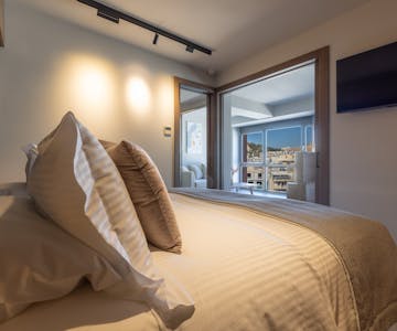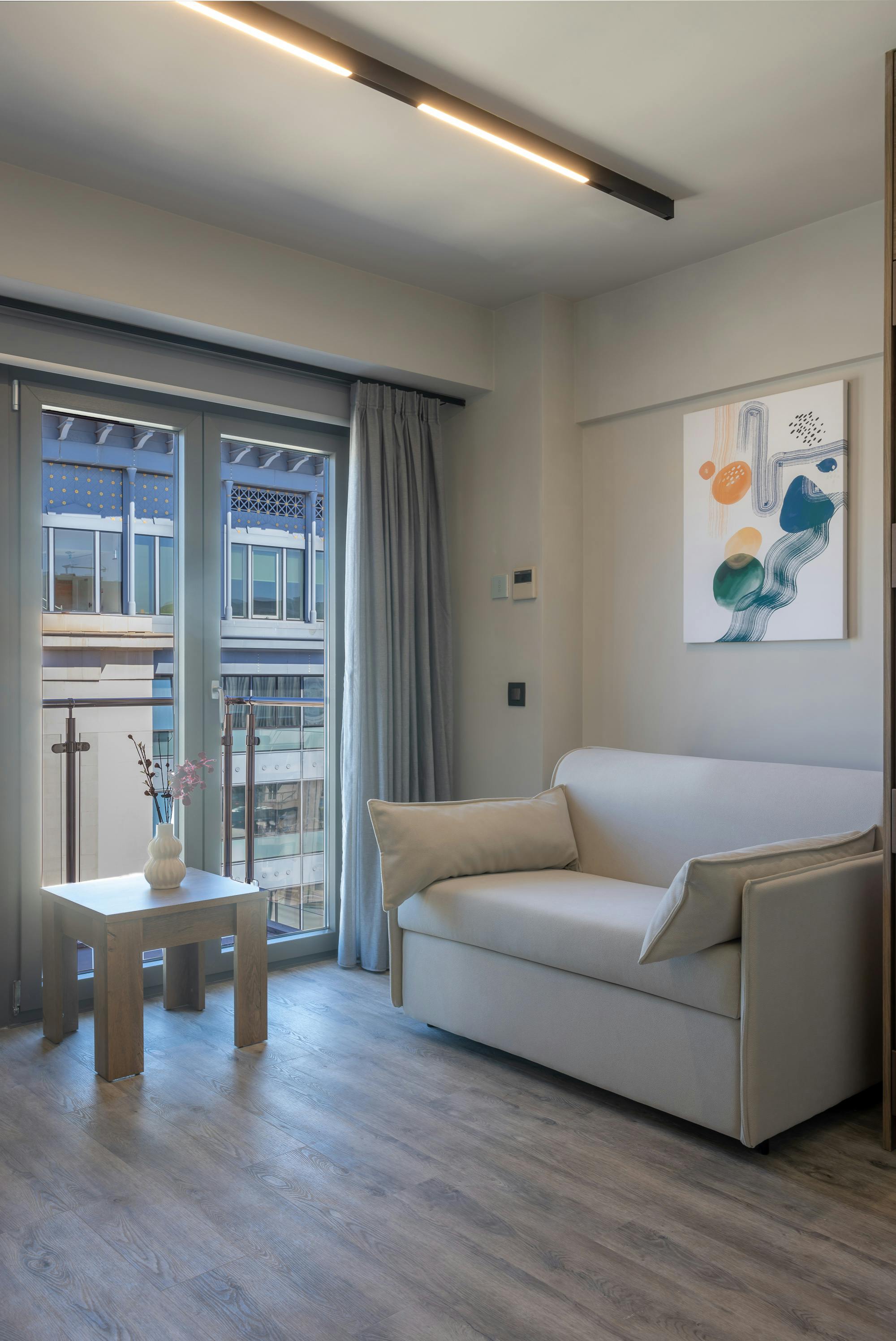 Discover a 45-square-meter luxurious suite with a balcony, offering breathtaking views of the Acropolis Hill and Philopappou Hill.