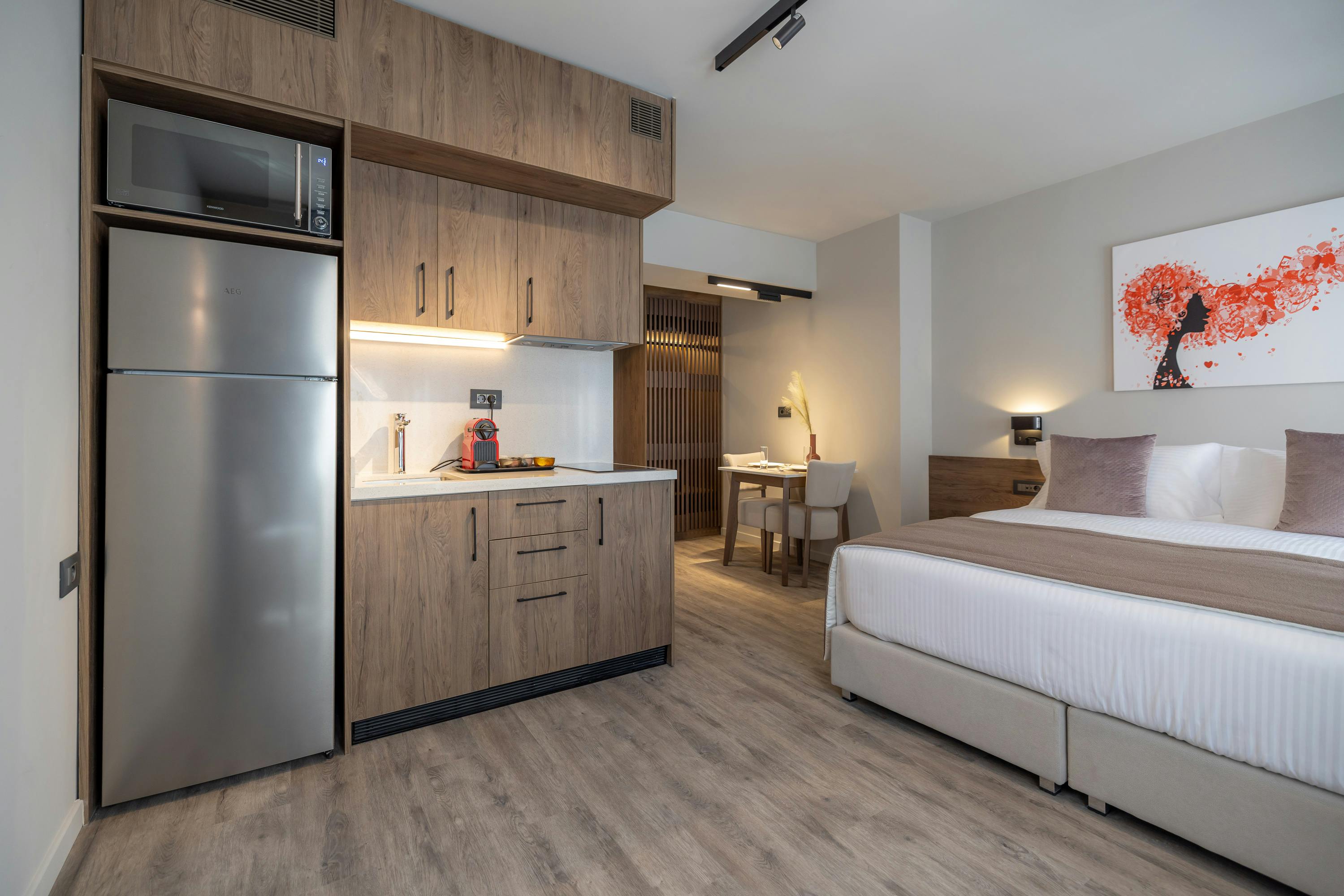Experience a spacious and opulent 24 square meter studio with the choice of a king or queen-size bed, all complemented by a serene backyard view.